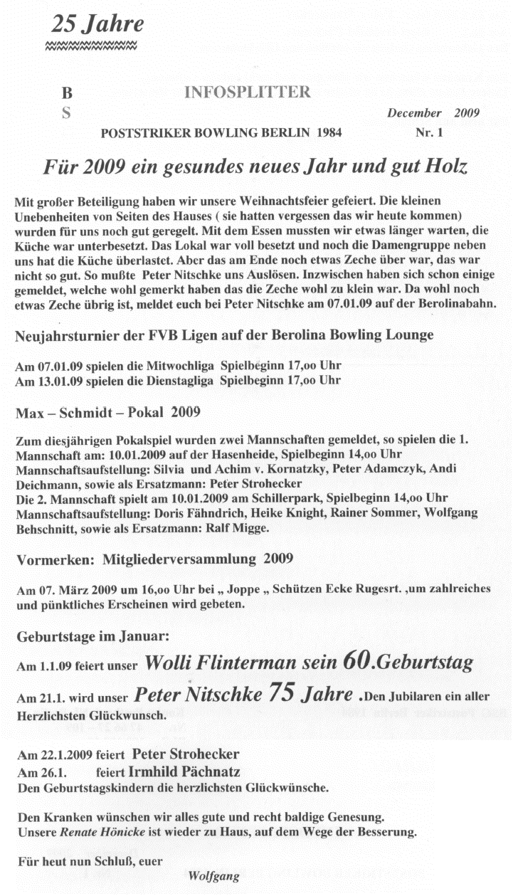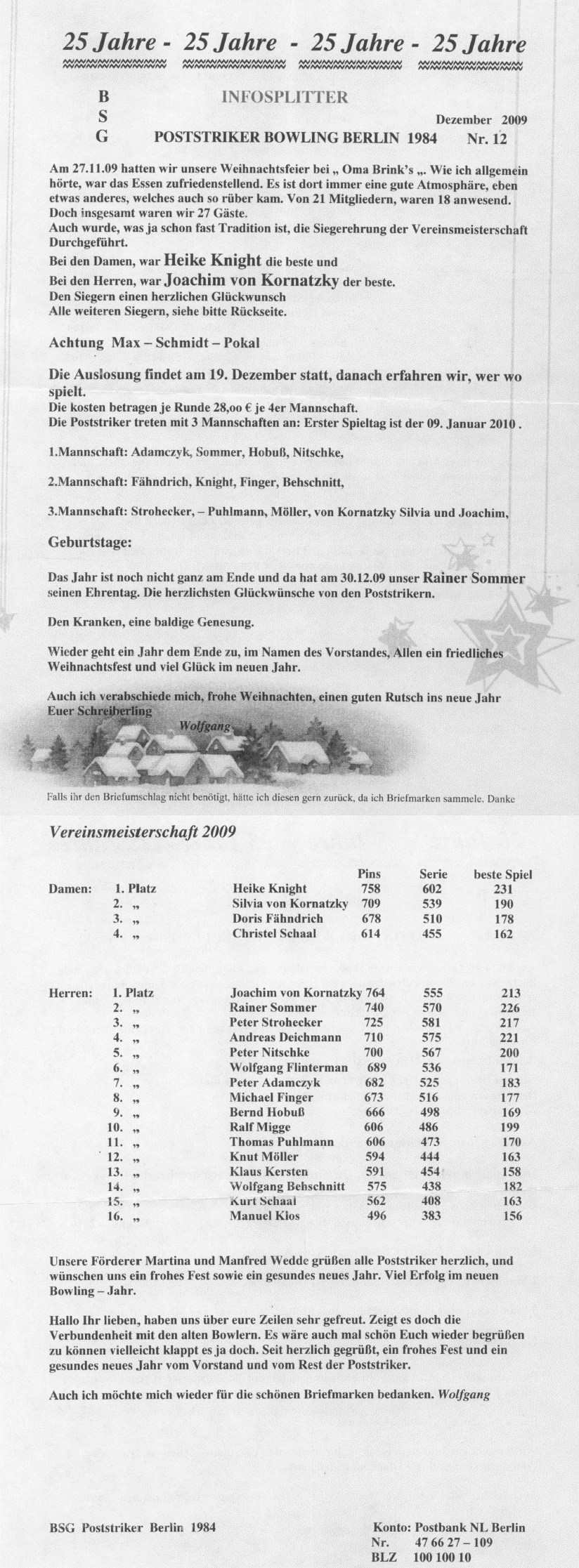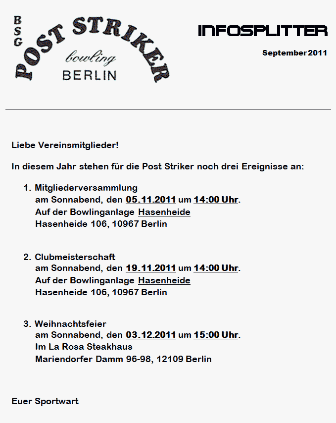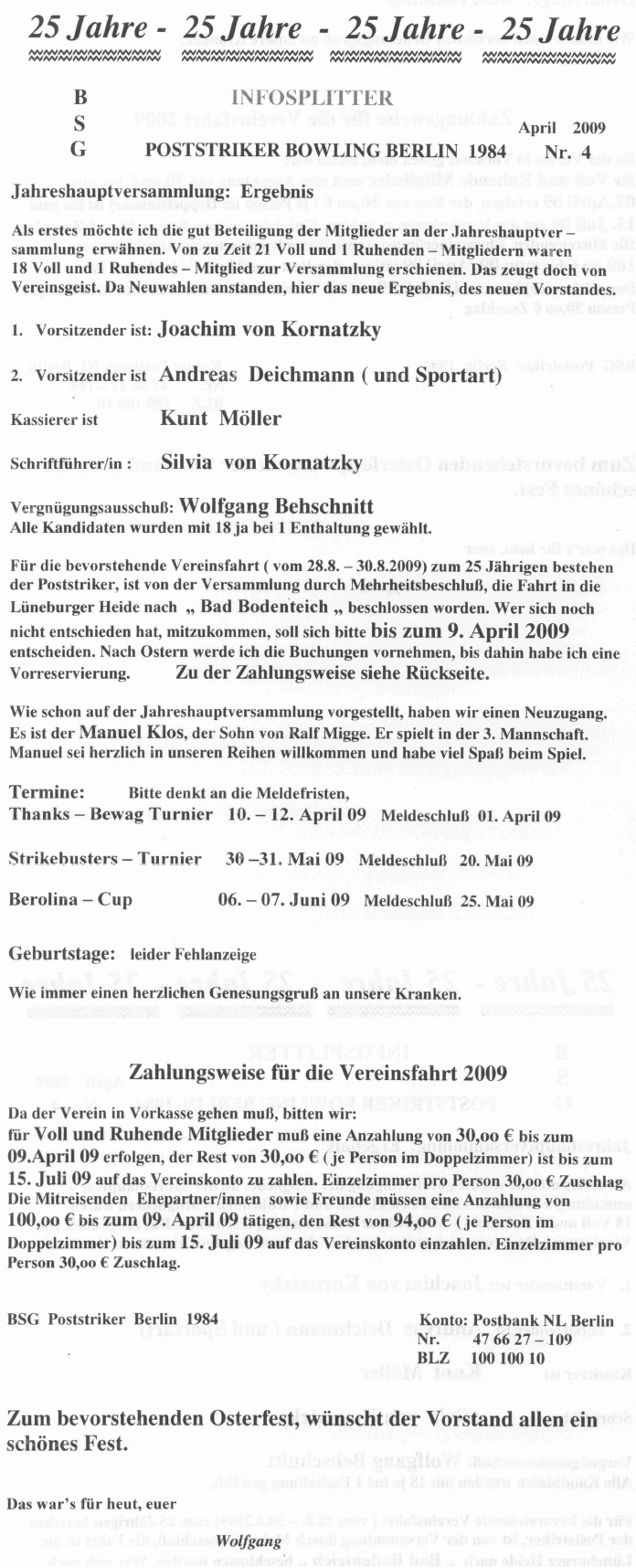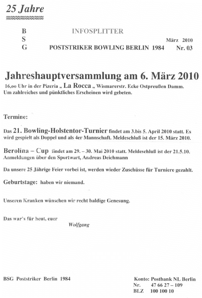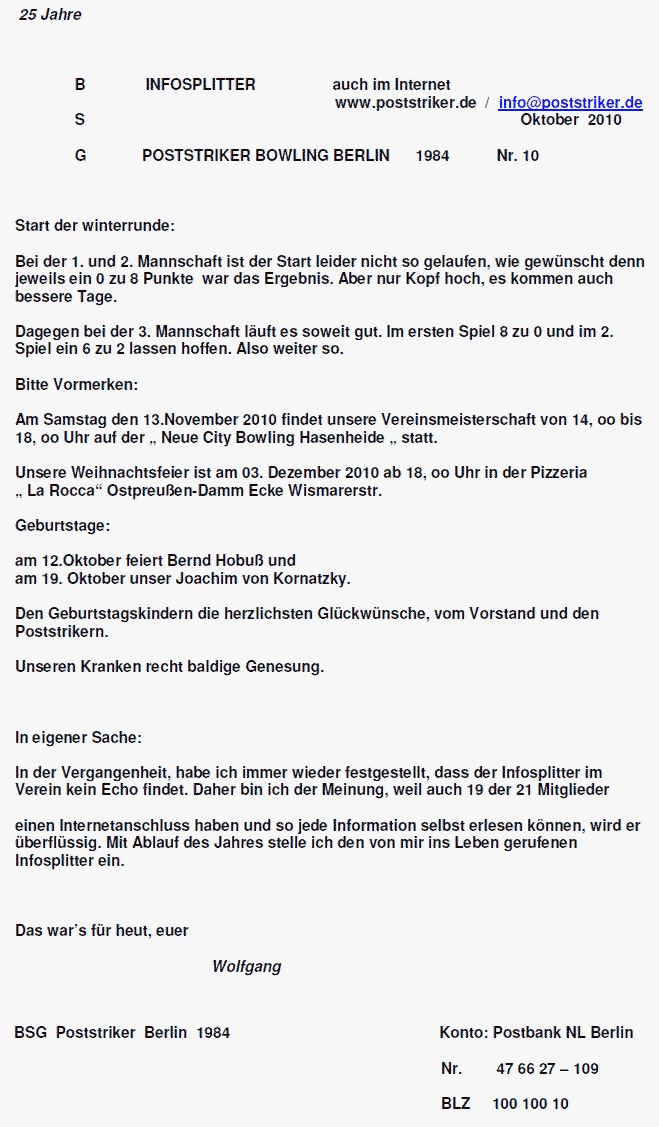 BSG Post Striker Berlin 1984 - Konto: Postbank NL Berlin - IBAN: DE17 1001 0010 0476 6271 09